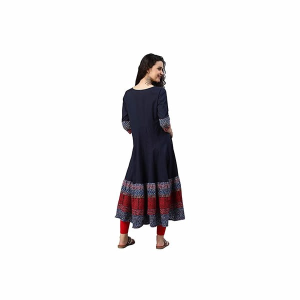 PRODUCT DETAILS Magenta printed Kurta with Trousers with dupatta Kurta design: Geometric printed Anarkali shape Pleated style Round neck, three-quarter regular sleeves Na pockets Floor length with flared hem Viscose rayon machine weave fabric Trousers design: Printed Trousers Elasticated waistband Slip-on closure Size & Fit The model (height 5'8) is wearing a size S Material & Care Machine Wash