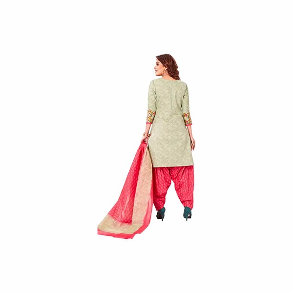 Indian Heritage in the most fashionable form. It’s all about style & tradition going hand in hand. Impress everyone with your stunning ethnic & traditional look by wearing this beautiful printed readymade cotton punjabi suit from the house of Jevi Prints. The style is more about being yourself. A style something very individual, personal and unique . The SKD with tasteful prints supplements your look while fulfilling a perfect wear. You can team this ethnic dress with a smooth traditional earrings and high footwear for an exquisite look. Ideal to wear at office, college, party, etc. The Punjabi Suit is light in weight and easy to drape. Fabric : Cotton. In the Box : 1 Top - 1 Bottom - 1 Dupatta. Wash Care : Wash with like colors. Color : Olive & Red. Print Pattern : Floral