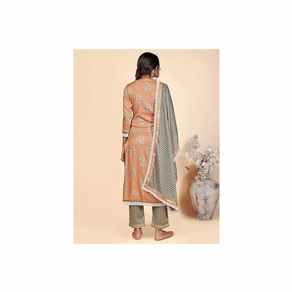 Women's Printed & Lace Work Straight Rayon Stitched Kurta Pant with Dupatta