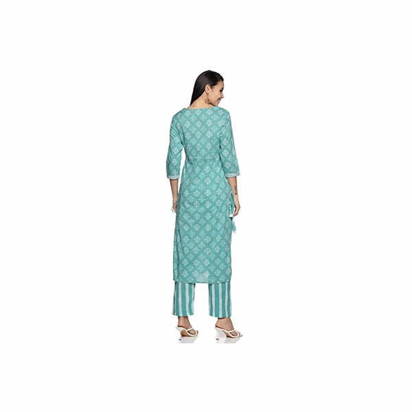 Refresh your wardrobe with this Printed Straight Kurta Pant Set from RAJMANDIRFABRICS available on Amazon. This Straight Printed Kurta having embroidery & hand work on Yoke Sleeve ,Pant border & Lace Work on Top Bottom With Drawstring latkan at waist area for proper fit. With beautiful designs and patterns along with Round Nack, Printed color Pant with embroidery border. Tailored from Cotton. Product Length: Kurta- 46 & Bottom- 39 Inches.. completes your look for your special occasions.