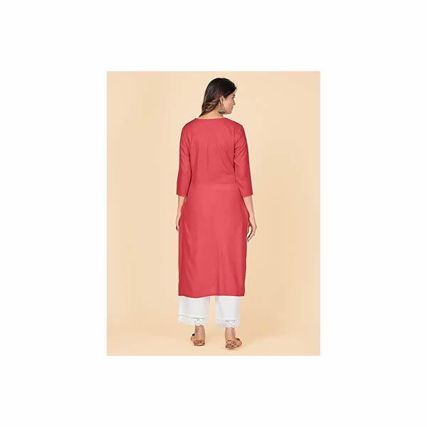 Women's Solid & Embroidered Straight Cotton Stitched Kurta