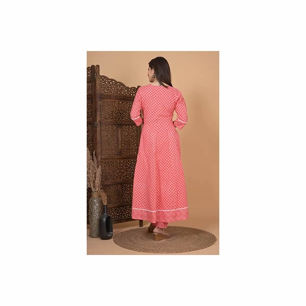 An amazing range of women's ethnic wear in soft and solid colors that looks perfect for regular wear. With beautiful designs and patterns. These apparels are very stylish and comfortable too. Get rid of the 'regular' look this festival wearing Anarkali Kurta Pant With Dupatta Set by NASRO. This Anarkali Printed all over With embroidery on yoke and Printed Pant and Dupatta Set . Duptta Fabric is cotton , along with Round Neck & 3/4th Sleeves. Tailored from Cotton. Product Top Length: 52 Inches & Bottom Length : 39 Inches.