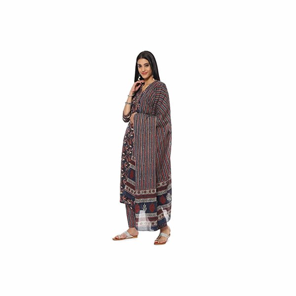 Women's Blue Cotton Screen Print Unstitched Suit Set