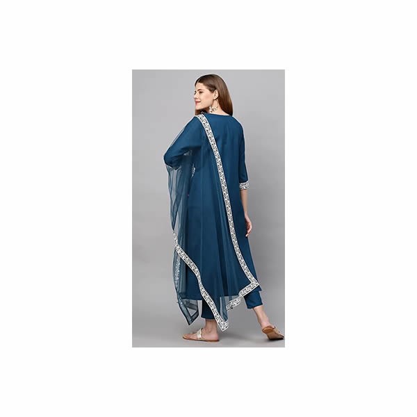 Women's Cotton Blend Straight Embroidered Kurta with Pant & Dupatta