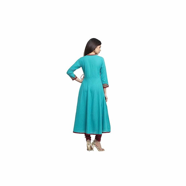 Neck Style: V-Neck; Item Length Description: Calf-Long; Sleeve Type: 3/4 Sleeve; Occasion Type: Festival cotton slub || product length : calf length (48 Inches) || in box : 1 kurta; Disclaimer : there might be slight variation in the actual color of the product due to different screen resolutions