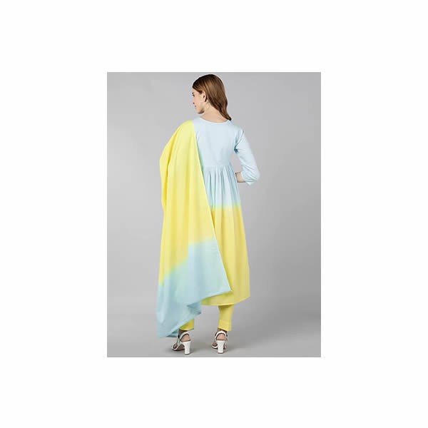 Womens Cotton Tie die Print Flared Kurta Pant Dupatta