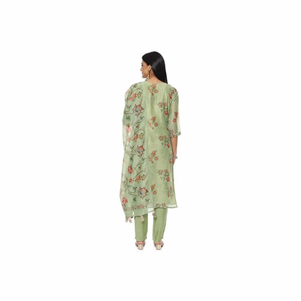 Women's Green Chanderi Machine Embroidered Unstitched Suit Set