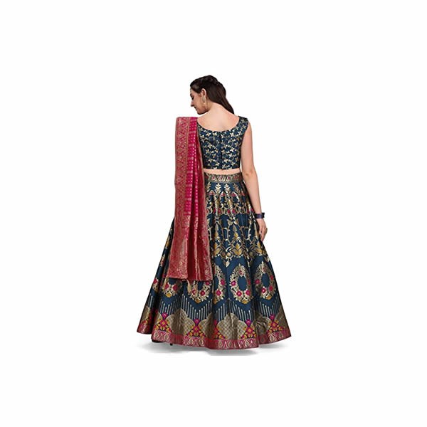 Choli Fabric: - Jacquard; Dupatta Fabric :- Jacquard; Be the prettiest bride in this Finished Jacquard bottom lehenga embellished with Zari work. Dupatta Length : 2.20 mtr; Dupatta Width: 57cm; blouse Length: 1 mtr. Product Consist 1 Choli 1 Lehenga 1 Dupatta; Style ( Pattern ) - Anarkali Lehenga. It is ideal for Navratri; Marriage; Ceremony and any Formal function. It can be worn casually in friends. It is a Stitched lehenga and unstitched blouse. You will be a center of attraction in the event once you wear it. The true mystery of excellent fashion and design is revealed with this exotic collection. Pair this piece with heels or flats and matching jewelry for a stunning look. This lehenga comes as Semi-stitch so you can be stitched according to your taste and preference. The lehenga fabric makes this lehenga easy to drape and carry all day long. All Accessories shown are for styling purposes only. Slight color variation may occur due to photographic reasons.