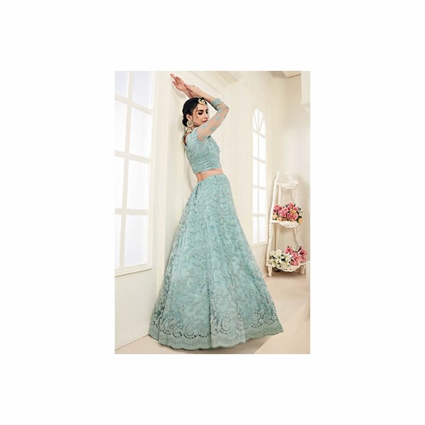 Look like the quintessential bride with our wide range of Lehengas. Adorn our well-crafted and detailed lehnga and bask in the regal glory of our collections. A Lehenga is crafted from Pink color And Net fabric. Embroidery work gives the beautiful look to this lehenga, especially the Pink color Stone combination. This Ghagra is generally worn for celebratory occasions like weddings and festivals and also wearable as chaniya choli and lacha