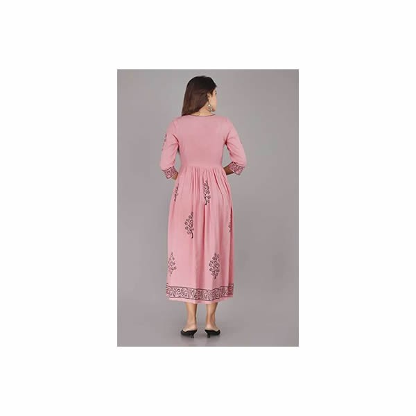 Women's Rayon Anarkali Hand Block Printed Kurti