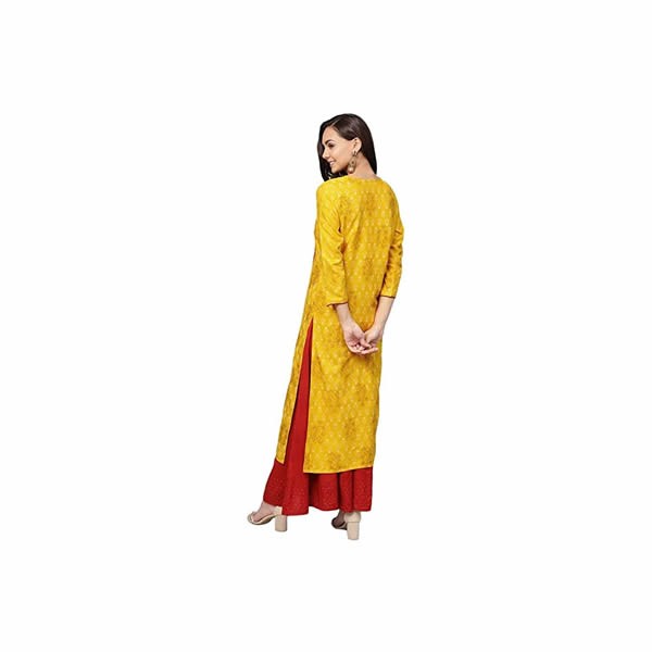 Women yellow color straight embroidery kurta. it is made of rayon fabric it is of calf length with regular 3/4 sleeves. Make a unique addition to your wardrobe with this elegant designer Kurti from the house of Haute & Hamble. Slip into this trendy and attractive dress and look stylish effortlessly. These kurtis has been made to accentuate any body type. Look nice for the day or for your next dinner party or family gathering. Each piece is created using traditional textile techniques and will surely add to your wardrobe. These elegantly stylish kurti offers great quality and comfort fit. Team up the kurtis. It will also give you that extra oomph and make you stand out wherever you are.