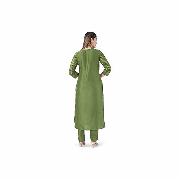 Refresh your wardrobe with this salwar suit set from Jwalin available on Amazon. This a-line salwar suit set completes your look for your special occasions and celebrations. This festive season glam up your ethnic wardrobe with this sky kurta set. This simple kurta set comes with a pair of solid secret pants and a matching dupatta. The kurta and pant crafted with crepe silk fabric and the dupatta is made of kota doria fabric which is comfortable to your skin. This kurta featured straight calf length, has a notched neck, three-quarter sleeves, straight hem, side slits. In dupatta gotta patti work make more beautiful this outfit. You can team it with multi-strapped flats and a silver-toned bracelet.