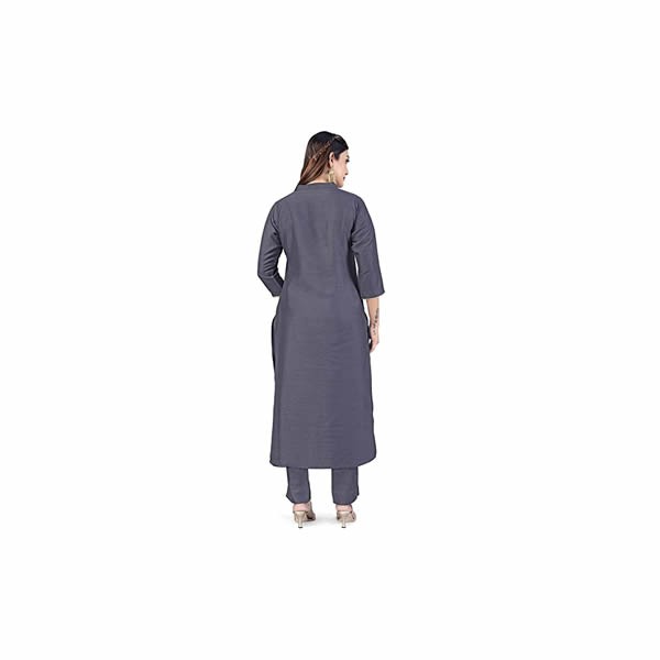 Refresh your wardrobe with this salwar suit set from Fashion Dream available on Amazon. This a-line salwar suit set completes your look for your special occasions and celebrations. This festive season glam up your ethnic wardrobe with this sky kurta set. This simple kurta set comes with a pair of solid secret pants and a matching dupatta. The kurta and pant crafted with crepe silk fabric and the dupatta is made of kota doria fabric which is comfortable to your skin. This kurta featured straight calf length, has a notched neck, three-quarter sleeves, straight hem, side slits. In dupatta gotta patti work make more beautiful this outfit. You can team it with multi-strapped flats and a silver-toned bracelet.