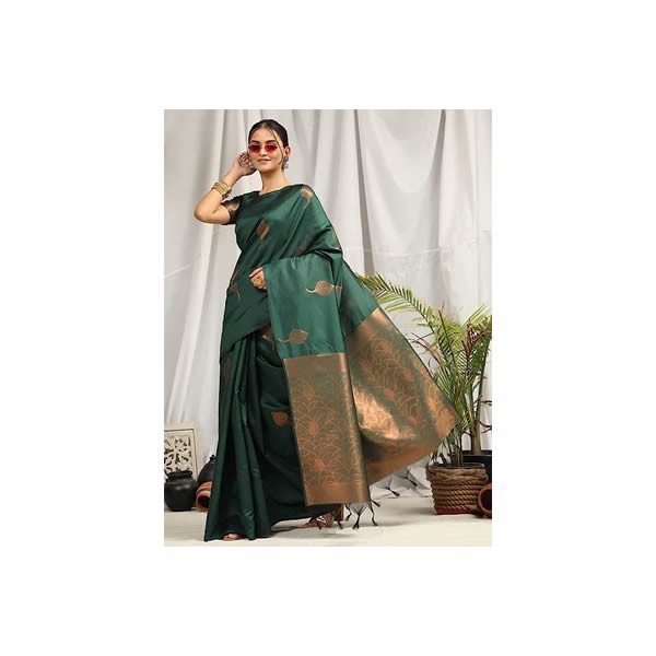Women's Solid Lichi Silk 5.5 Meter Saree with Unstitched Blouse Piece
