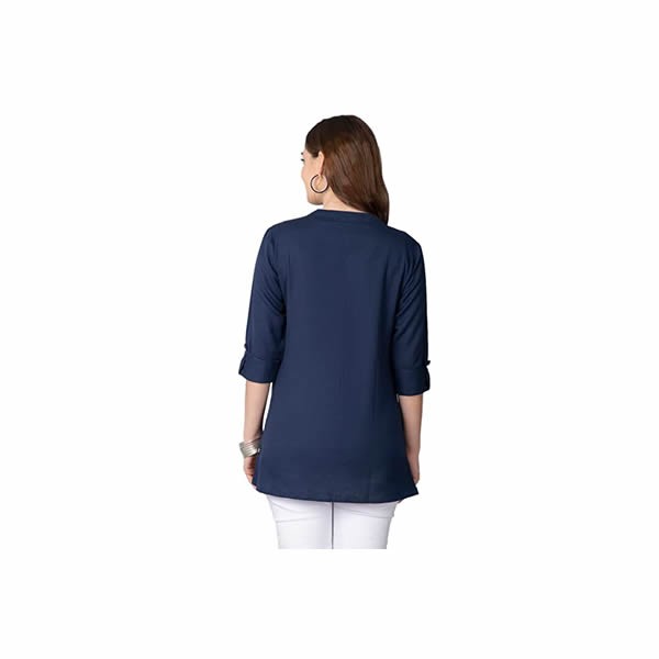 A women's solid cotton top kurti is a traditional Indian garment made from solid-colored cotton fabric. It is typically a long tunic-style top that can be worn with leggings, palazzos or traditional bottom wears like churidar, salwar, or straight pants. The kurti length of 30 inches is a perfect length for most women and falls at the knee, providing a modest and sophisticated look
